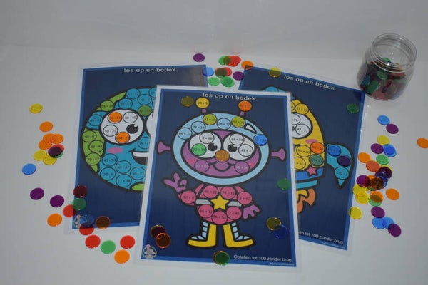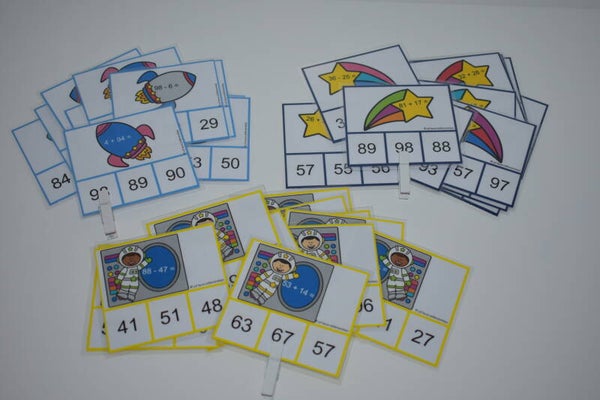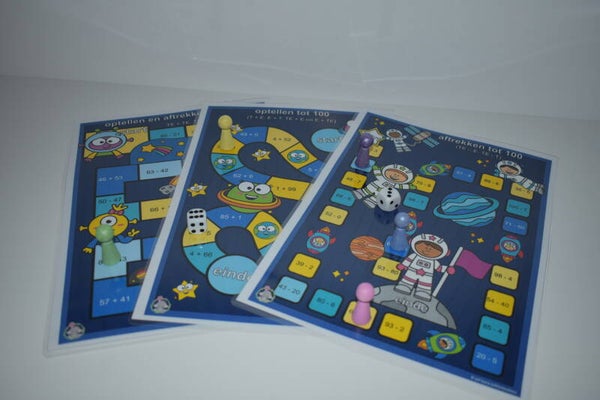 Rekenspelletjes + en - tot 100 (thema in de lucht / ruimte)