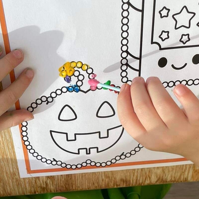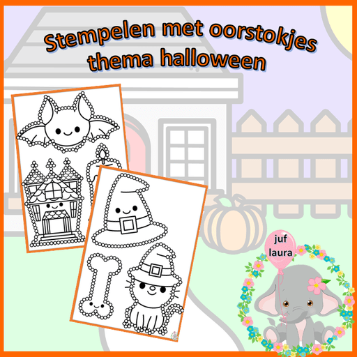 ✏️ In dit bestand zitten 7 pagina's in het thema halloween.Door het stempelen met oorstokjes leren kinderen nauwkeurig werken en oefenen ze de pengreep in.