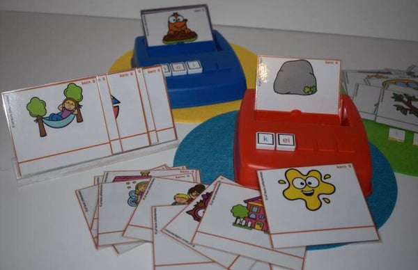 Je kan er ook voor kiezen om de kaartjes te gebruiken met de in mekaar klikkende letter of houten bokjes waar je elke letter zelf op schrijft.